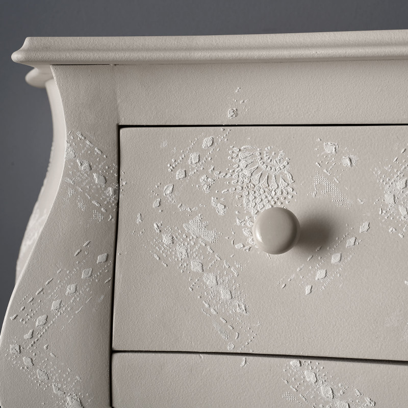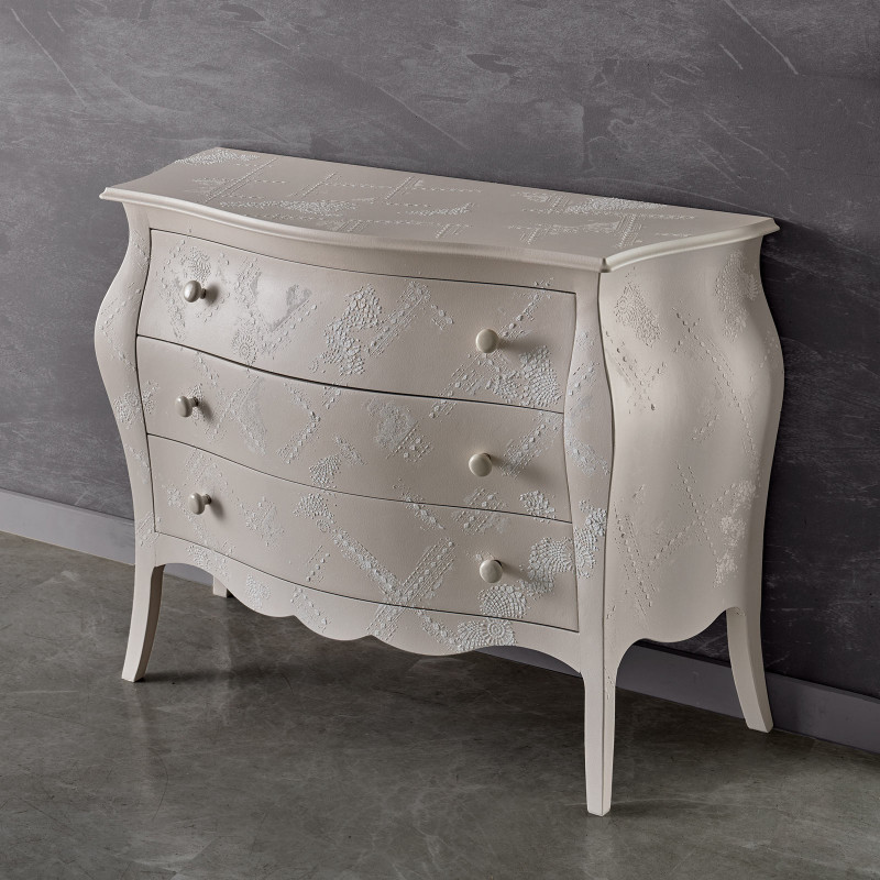 Como' bombato con tre cassetti e decorazione in rilievo
