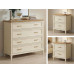 Il comò è dotato di quattro ampi cassetti, ideali per organizzare biancheria, abbigliamento e accessori con la massima praticità. I frontali dei cassetti sono impreziositi da una raffinata riquadratura a rilievo che dona profondità e carattere al mobile. La struttura poggia su piedini leggermente sagomati e slanciati, che alleggeriscono visivamente il volume del mobile rendendolo elegante e non ingombrante.