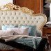 Letto matrimoniale in legno intagliato.Testata con imbottitura con lavorazione a capitonnè. Pediera bassa con dettaglio intagliato sui piedini. Questo letto è perfetto per un arredamento attuale ed elegante, ideale per chi vuole arredare una camera da letto di lusso di elevata qualità.