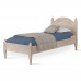 Letto singolo in legno massello di abete, stile country. Visibile la venatura naturale del legno che conferisce calore e comfort alla stanza.