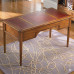 Scrittoio in legno massello di toulipier, con cassetti riquadrati e piano in vera pelle, ideale per ambienti eleganti e funzionali.