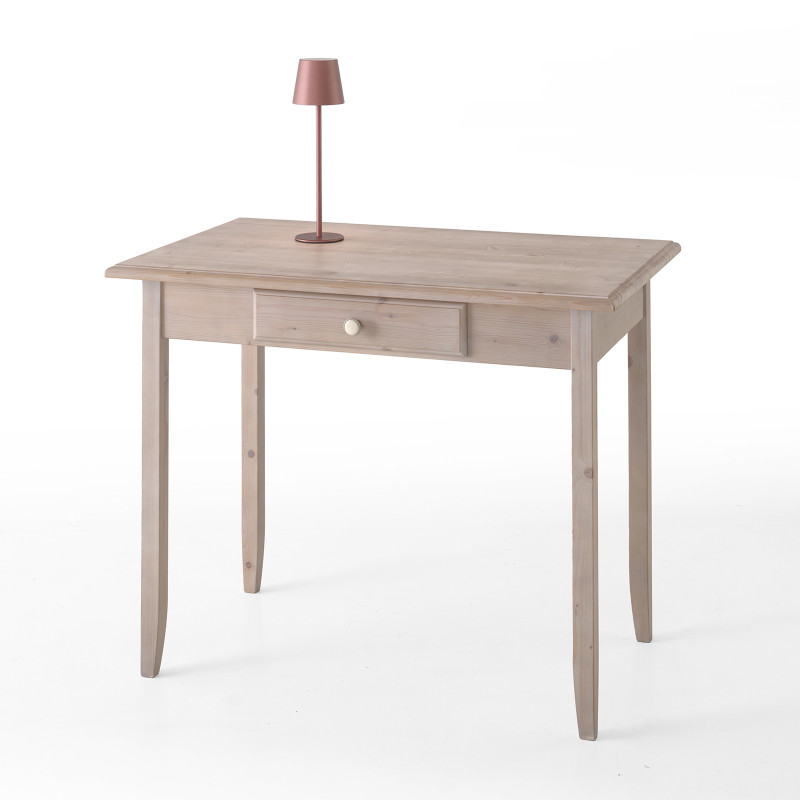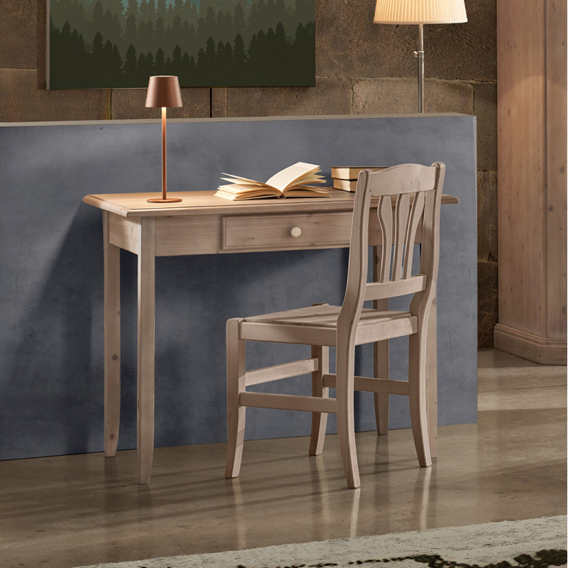 Scrittoio in legno massello di abete con cassetto, ideale per arredare camere con stile.