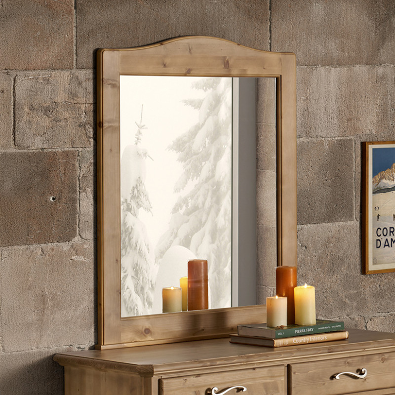 Specchiera con cornice in legno massello di abete, ideale per completare l’arredo della camera da letto o di ambienti in stile classico e country. Il design semplice con cornice sagomata superiore unisce eleganza e praticità, valorizzando la luminosità dello spazio e creando un effetto di ampiezza. Può essere abbinata al comò coordinato oppure utilizzata singolarmente.