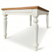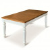 Tavolo rettangolare allungabile con apertura al centro, dotato di 4 allunghe da cm 40, con piano in frassino e gambe tornite.